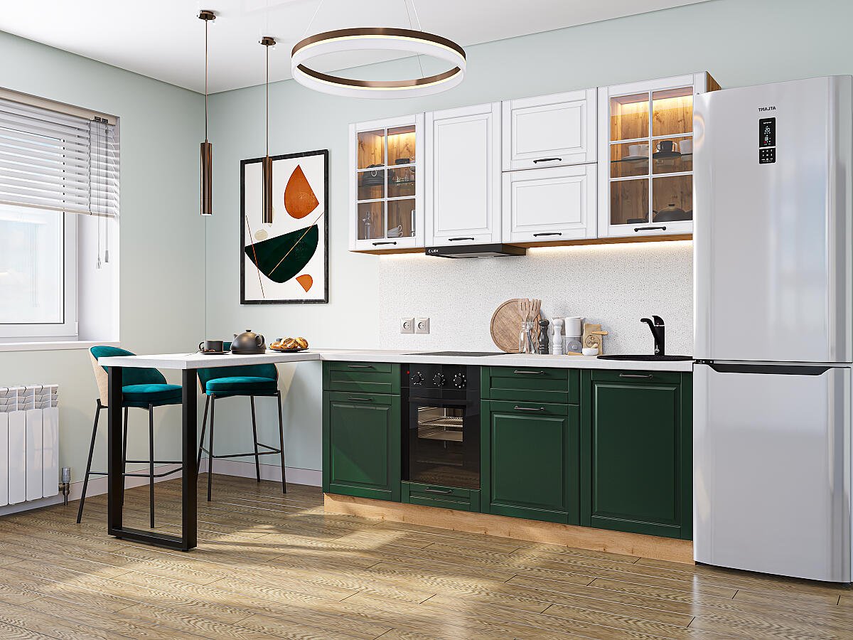 Дублин-03 (2140х1950х600) Белый/Special White/Special Green совмещает благородную привлекательную эстетику с практичностью и хорошим функционалом. Продуманный дизайн уместно дополнит созданный интерьер и органично впишется в любое помещение.