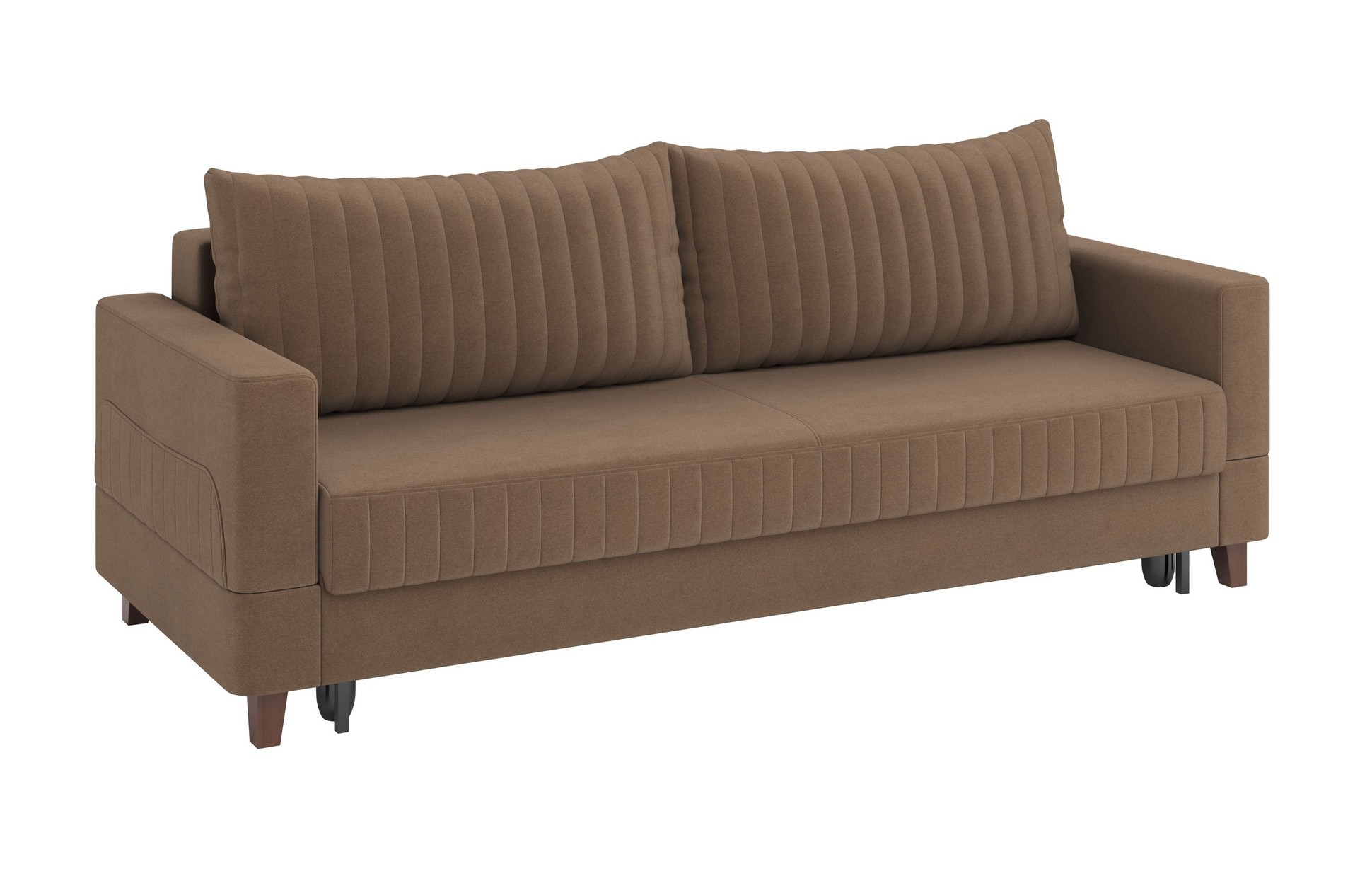 Диван - кровать ЕвроМагнат (велюр тенерифе шоколад) совмещает благородную привлекательную эстетику с практичностью и хорошим функционалом. Продуманный дизайн уместно дополнит созданный интерьер и органично впишется в любое помещение.