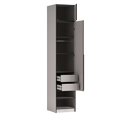 В детской между кроватью и компьютерным столом осталось немного места, и мы заказали этот шкаф, очень удачно вошёл. И по цвету (мы выбрали светлый) почти совпал с остальной мебелью. На пять вместительных полок разложили домашнюю одежду сына, а для школьной у нас отдельный шкаф. По качеству и цене нас всё устроило.